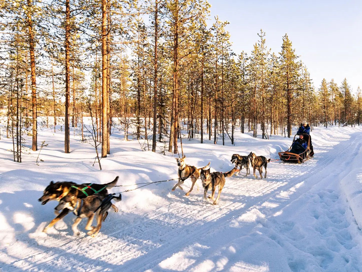 Café da manhã. Uma magnífica experiência de inverno espera por você a bordo de um trenó puxado por huskies, percorrendo 5 km. O condutor irá recebê-lo na recepção do hotel e acompanhá-lo até o canil, onde os huskies do Alasca o receberão com alegria. Ele também lhe mostrará como conduzir o seu próprio trenó. Agora você está pronto para partir e desfrutar da natureza e do silêncio enquanto os huskies percorrem as trilhas de inverno em uma jornada inesquecível. Após o passeio, retornaremos ao canil para desfrutar de bebidas quentes ao redor da fogueira enquanto ouvimos histórias sobre os huskies.